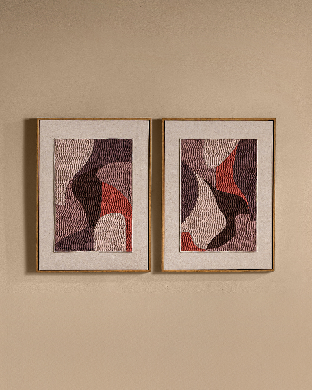 Each piece is thoughtfully handcrafted using fabric gathering techniques on cotton and linen. As with all handmade work, slight irregularities may occur. The artwork comes framed and ready to hang.