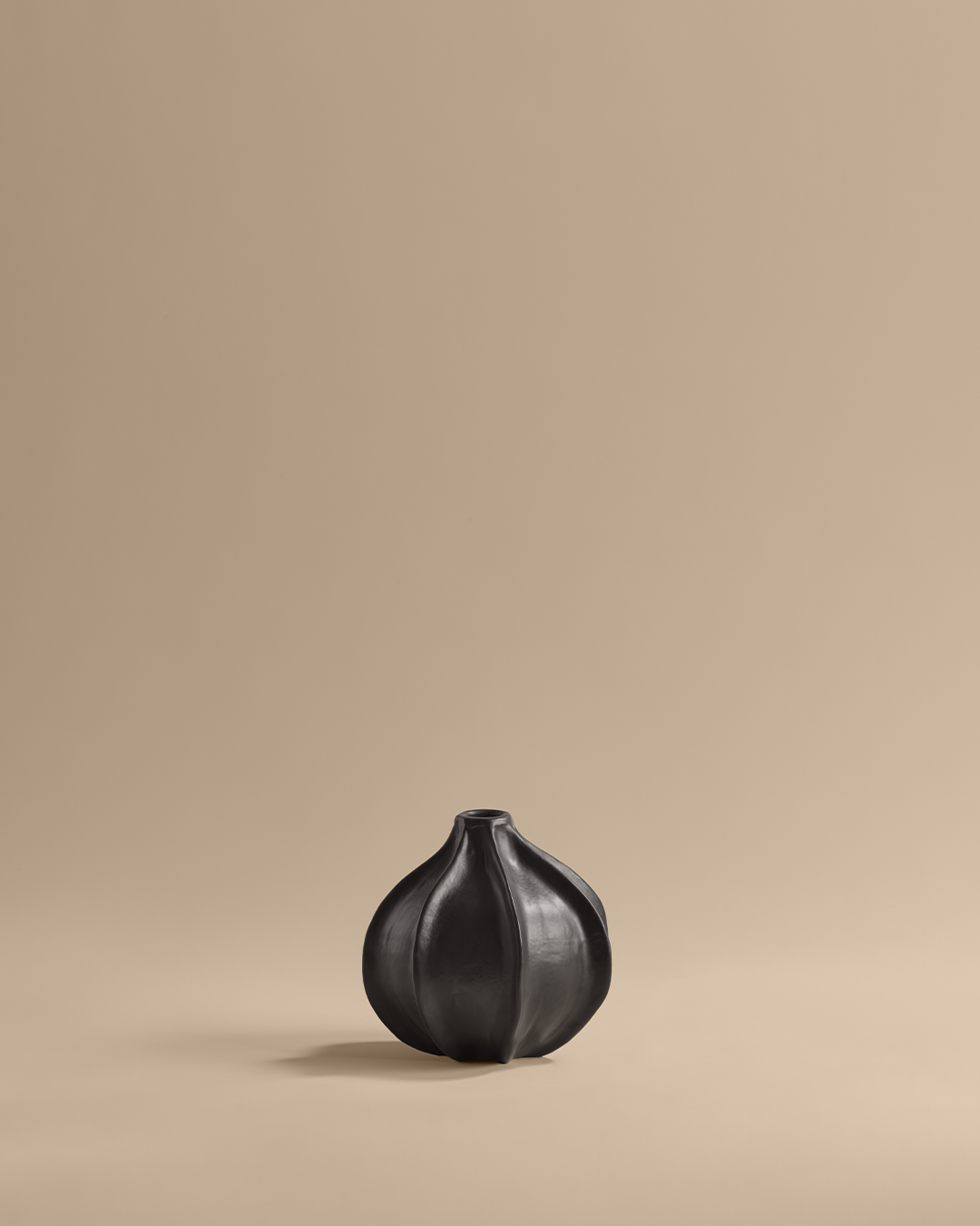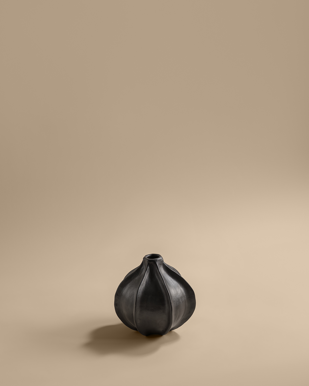 Drawn from the geometry of garlic, this vase finds beauty in the unexpected. Pinched arches flow into one another, resembling garlic cloves that remain distinct yet gently held together. The form narrows into a delicate neck, giving it a graceful poise while keeping its presence soft and approachable. Modest in size, it feels at home in intimate spaces—perfect for a single stem or a light cluster of grasses—adding a touch of warmth and ease to cosy corners.