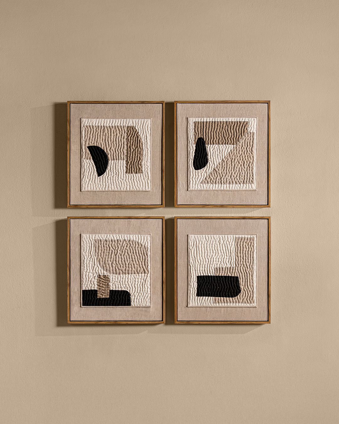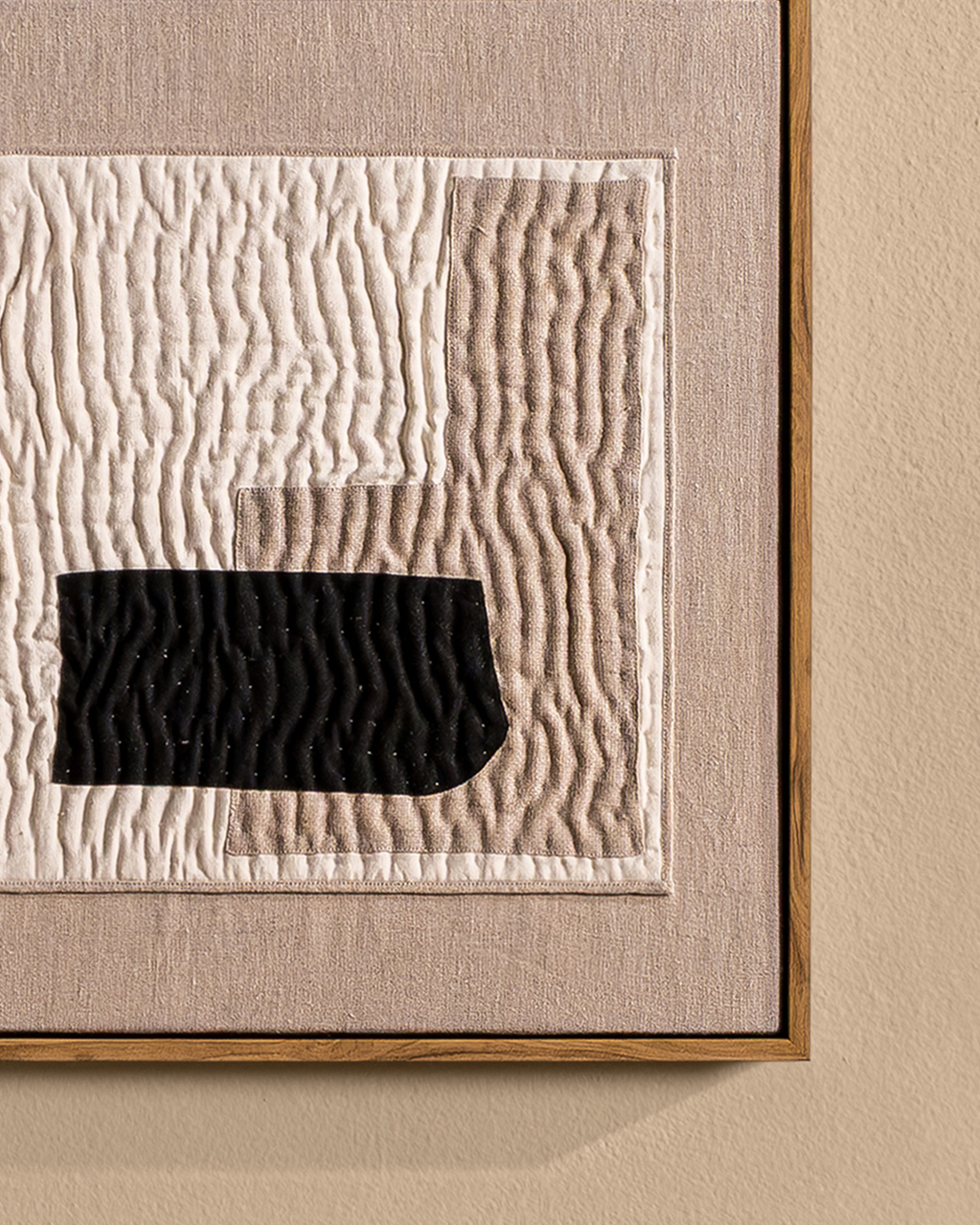 Each piece is thoughtfully handcrafted using fabric gathering techniques on cotton and linen. As with all handmade work, slight irregularities may occur. The artwork comes framed and ready to hang.