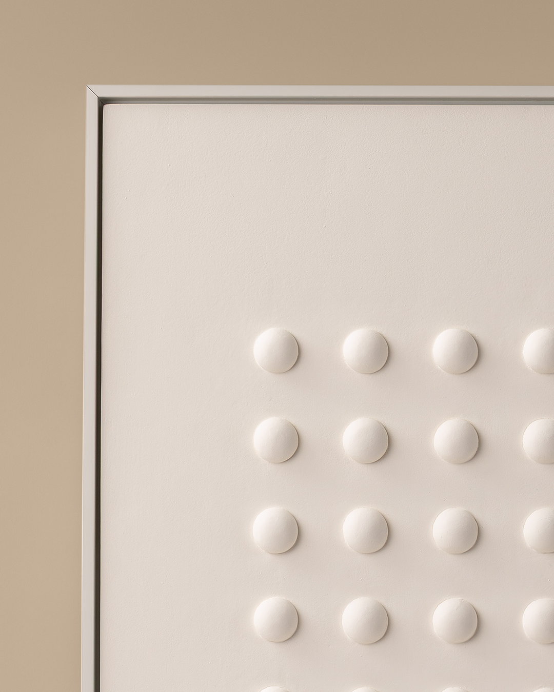 Defined by a strong dotted grid that’s offsetted from the center, Pauses Tall has a sharp linear and geometrical presence. Inducing a modern ambience, this art offers both symmetry and non-uniformity at the same time. Sleek and tall, it looks great either hung on an accent wall or kept calmly by the console.