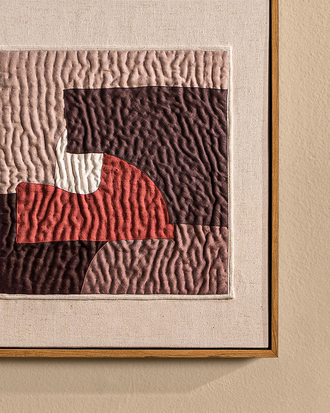 Each piece is thoughtfully handcrafted using fabric gathering techniques on cotton and linen. As with all handmade work, slight irregularities may occur. The artwork comes framed and ready to hang.
