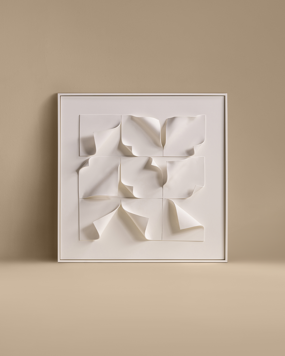 Interactive and playful, Viluna I impresses with its unique paper-folds and crease-like geometries. Visually light and appealing, this pristine white piece is an origami in making. Unveiling in unique forms within a structured square—Viluna I adds a chic layer to the interiors.